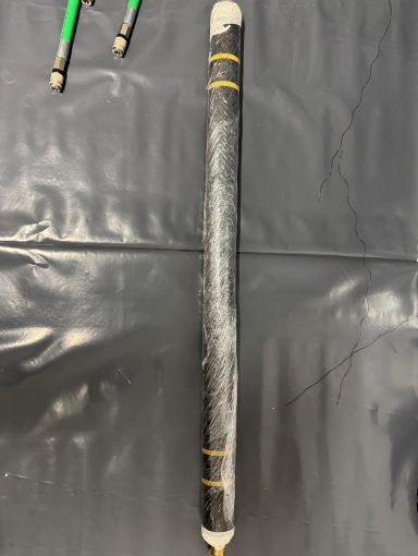Auf dem zweiten Bild ist der für die Sanierung vorbereitete Packer zu sehen. Dieser wurde vollständig mit Strechfolie umwickelt, damit sich die mit 3P-Harz eingestrichene Glasfasermatte später nach dem Aushärten problemlos vom Packer lösen lässt. Die Folie verhindert ein Anhaften des Materials am Packer und sorgt dafür, dass die Glasfasermatte ausschließlich an der Innenwand des Rohrs aushärtet und haftet.