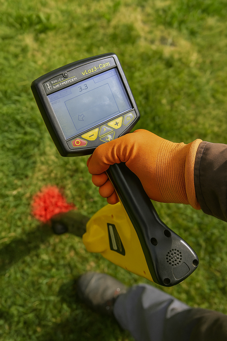 Hierbei kommt eine spezielle Sendersonde zum Einsatz, die in das Rohrsystem eingeführt wird und ein präzises Signal aussendet. Dieses Signal wird oberirdisch mit einem Empfänger geortet, wodurch die exakte Lage und Tiefe der Leitung festgestellt werden kann – auch unter Asphalt, Beton oder im unwegsamen Gelände.